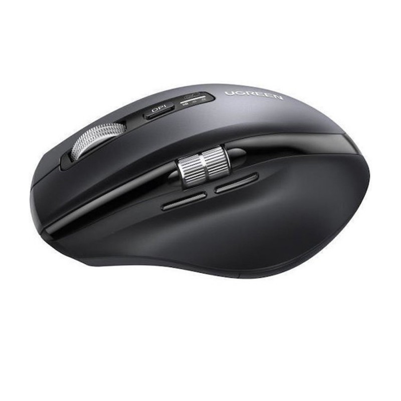 Компьютерная мышь UGREEN M751 Ergonomic (Беспроводная 2.4GHz и Bluetooth 5.4 / Расстояние до 10метров / Источник питания 2xAA / Количество точек на дюйм 5000 DPI / 1 доп. кнопка прокрутки / Черный цвет)